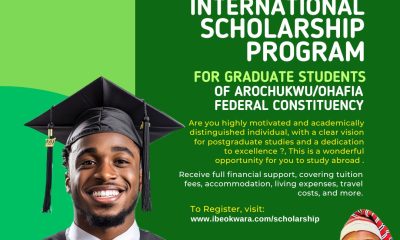Arochukwu/Ohafia Federal Constituency in Abia State is receiving an important opportunity as Honourable Ibe Okwara Osonwa announces over 100 fully funded international scholarships for talented postgraduate...